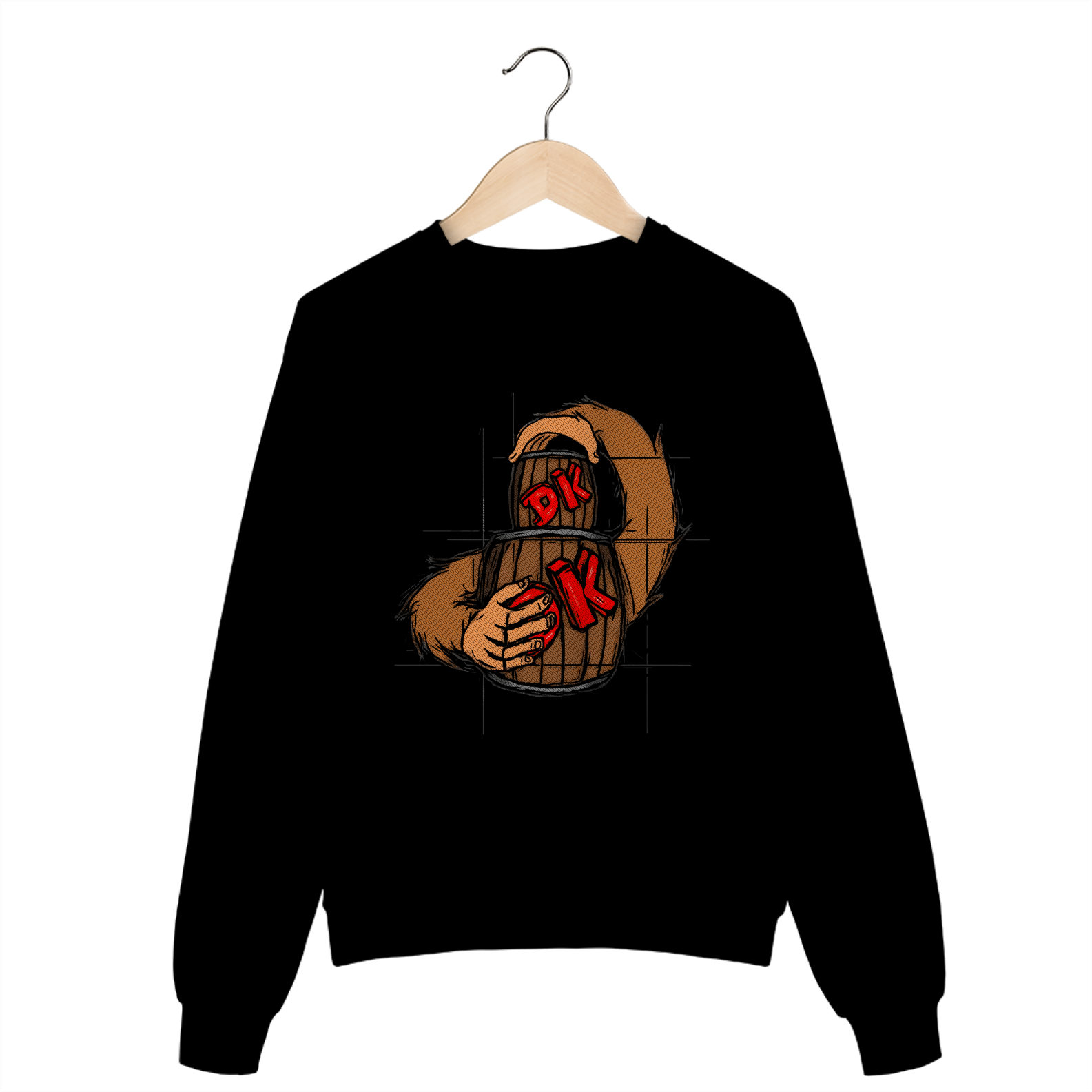 A estampa personalizada desse moletom foi fabricada a mão, pensando nos fãs do Donkey Kong e dos jogos antigos.